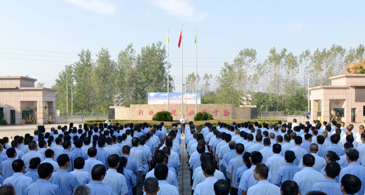 8:20時(shí),活動儀式在總經(jīng)理焦倫進(jìn)的主持下啟動,七名旗手邁正步從員工方隊(duì)繞過,直達(dá)旗壇,行進(jìn)口令威武響亮。在主持人的指令下,三名旗手將一面鮮艷的五星紅旗在莊嚴(yán)的國歌聲中徐緩地升上天空,員工方隊(duì)注目國旗,唱起雄壯的國歌。