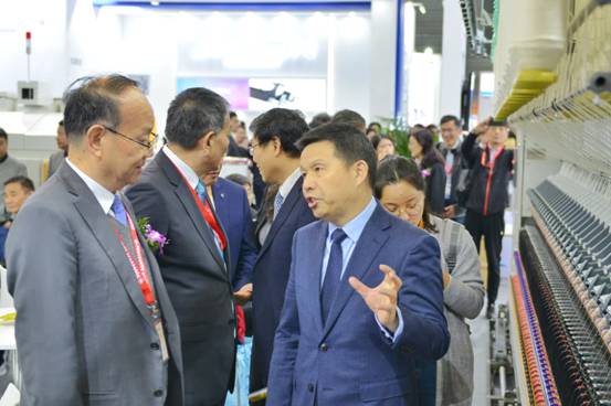 開展首日,中國紡織工業聯合會黨委書記、秘書長高勇,中紡聯原會長王天凱,中國紡織工業聯合會副會長楊紀朝,中國紡織機械協會會長顧平,中國紡織機械協會總工程師祝憲民等領導蒞臨天門紡機展位參觀。領導們近距離感受了天門紡機最新技術及設備,通過了解企業的設備性能及其工業設計,對企業的技術水準予以了肯定。