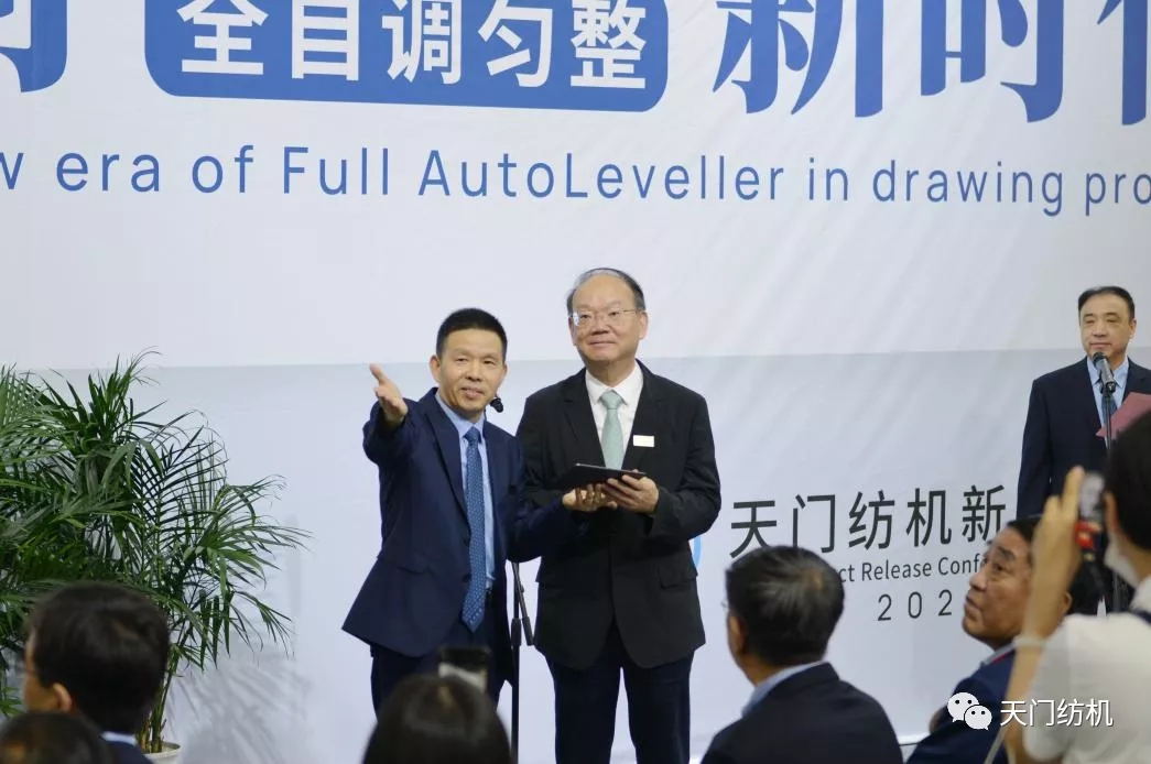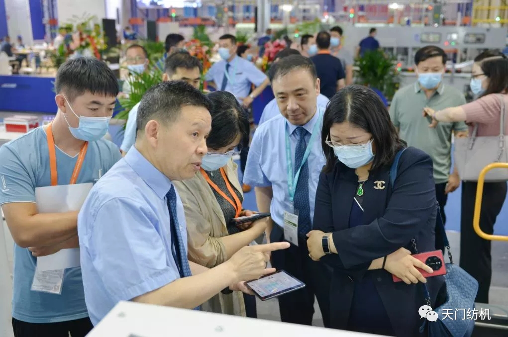 2021年6月12日,在上海國際紡機展上天門紡機舉行“開創并條工序全自調勻整新時代”新品發布會,中紡聯黨委書記高勇使用手持終端為新產品開機