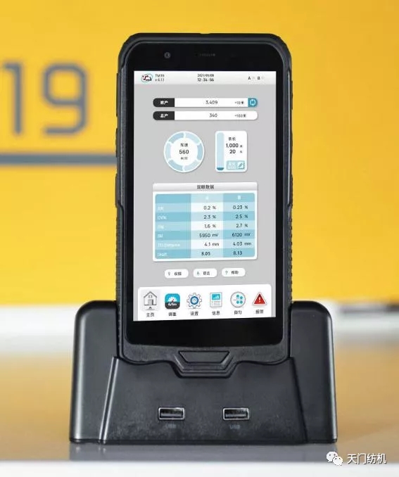 天門紡機緊密結合并條工序的特點,成功運用了集多種功能于一體的工業級手持終端,可以對T1系列并條機實施穩定、可靠、精準的無線操控。