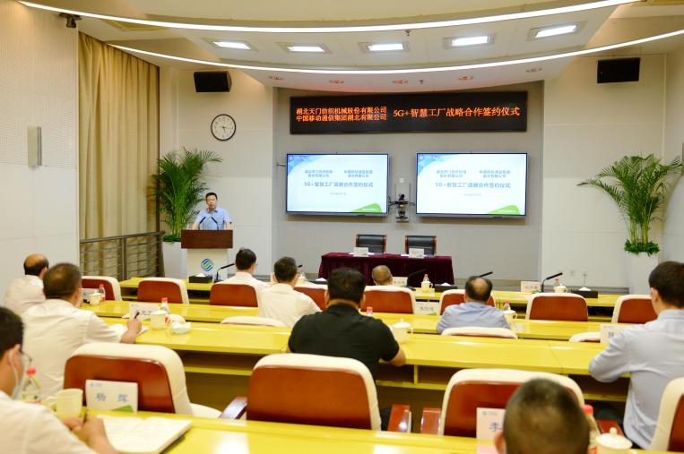 為“數轉智改”儲能 為攜手共建奠基 --天門紡機、湖北移動舉行“5G+智慧工廠”戰略合作簽約式