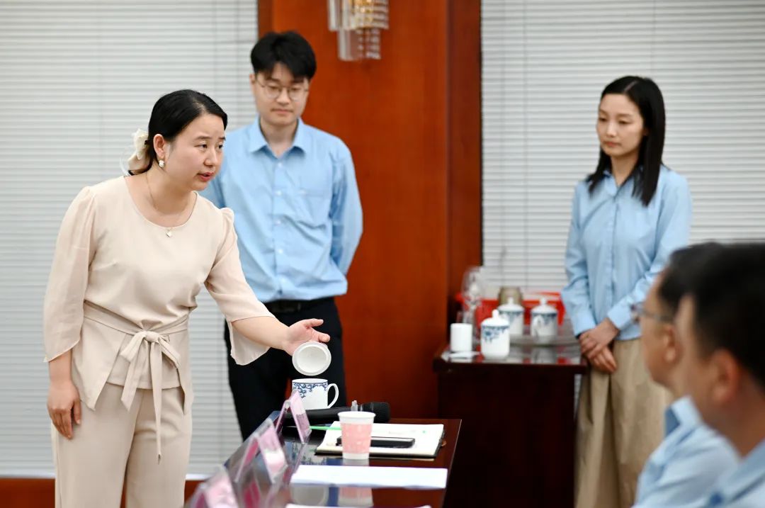 本次培訓邀請到了天門職業學院禮儀講師丁毓女士,她以職場禮儀形象為主講內容,從最常見的會面禮儀、接待倒茶禮儀、會議禮儀、酒桌禮儀等進行教學,并通過現場模擬擺席卡、倒茶、握手、遞名片等方式與員工互動。老師傾囊相授,員工認真領會,課堂氣氛緊張而活躍。