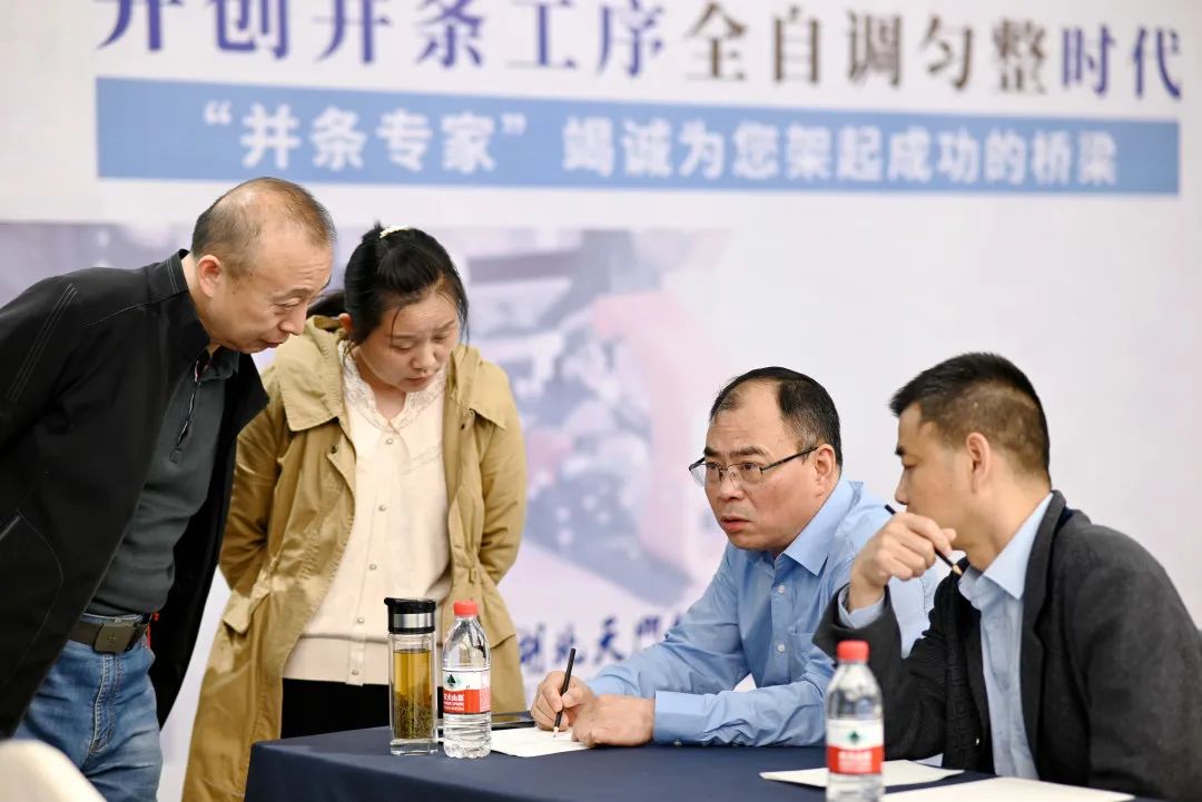 在專家答疑環節上,天門紡機、中國紗線網的4位專家接受現場紡織企業代表的提問,針對生產中的實際問題,專家們答疑解惑、對癥開方,持續1小時的互動,解答了數十個生產疑難,起到了良好的效果,贏得了現場熱烈的掌聲。