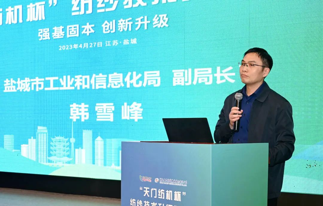 當天下午,舉行了開幕式及主題報告演講,鹽城市工業和信息化局副局長韓雪峰、鹽城市紡織工業協會會長戴俊等領導出席會議并分別致辭,他們對“天門紡機杯”的舉辦表示歡迎,希望通過本次活動,加強多地紡織企業的交流與探討,使鹽城更好地了解市場需求和技術趨勢,探索鹽城紡織技術的創新與升級之路。