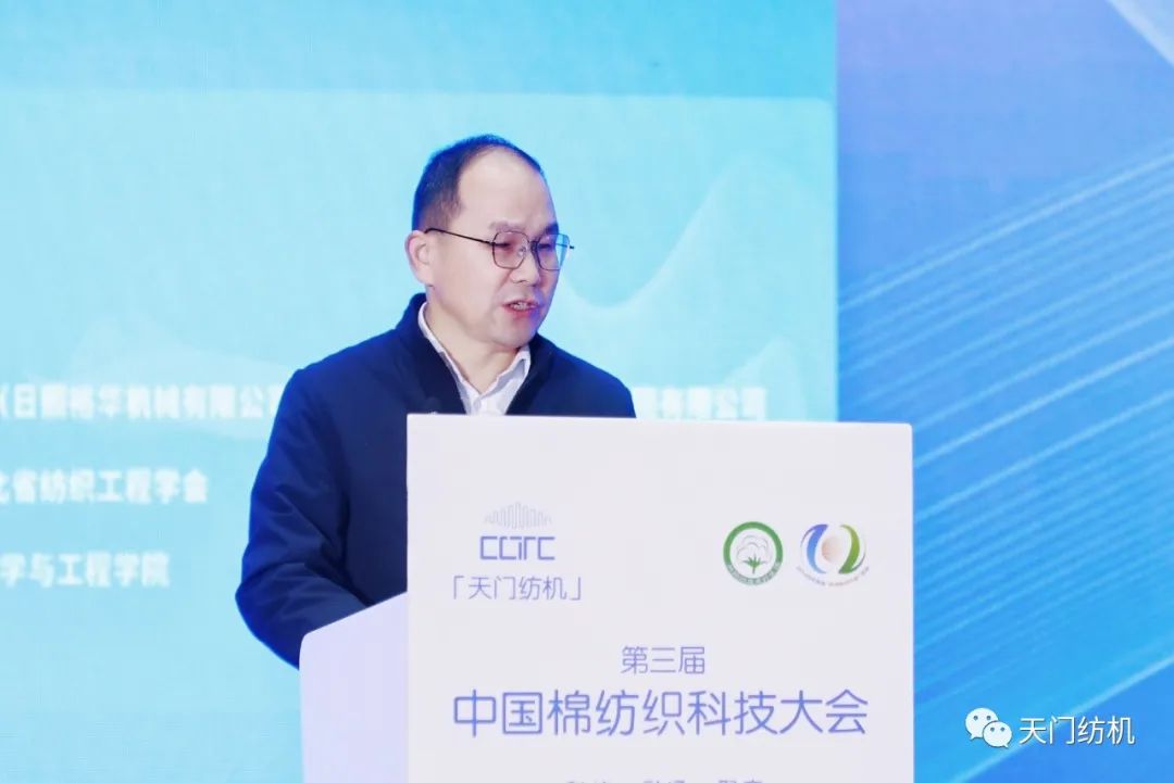 12月12日上午,中國棉紡織行業(yè)協(xié)會副會長景慎全主持開幕式,中國棉紡織行業(yè)協(xié)會會長董奎勇、湖北省經(jīng)濟(jì)和信息化廳副廳長周開斌、全國棉紡織科技信息中心主任/《棉紡織技術(shù)》期刊社社長王楊俊、天門紡機總經(jīng)理焦倫進(jìn)分別為大會致辭。