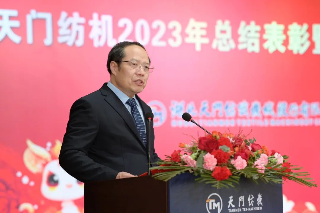 公司總經(jīng)理焦倫進(jìn)作工作報(bào)告。他說(shuō),2023年,天門紡機(jī)堅(jiān)持守正創(chuàng)新,扎實(shí)推進(jìn)高質(zhì)量發(fā)展,穩(wěn)中求進(jìn),取得佳績(jī)。全年銷售額、利潤(rùn)、入庫(kù)稅金保持最好水平,發(fā)展態(tài)勢(shì)良好。具體表現(xiàn)為:產(chǎn)品研發(fā)再奏凱歌,新一代產(chǎn)品競(jìng)相亮相;生產(chǎn)制造再立新功,圓滿完生產(chǎn)任務(wù);市場(chǎng)營(yíng)銷再顯身手,產(chǎn)品市場(chǎng)占有率穩(wěn)中有升;技術(shù)改造再現(xiàn)驚喜,“智慧工廠”項(xiàng)目和信息化建設(shè)有序?qū)嵤蝗瞬殴ぷ髟匍_(kāi)新局,梯隊(duì)建設(shè)初具雛形;項(xiàng)目申報(bào)再創(chuàng)佳績(jī),榮譽(yù)和效益實(shí)現(xiàn)雙豐收;基礎(chǔ)管理再擔(dān)重任,企業(yè)基石得到夯實(shí);文化建設(shè)再展風(fēng)采,公司凝聚力進(jìn)一步提升。新的一年,天門紡機(jī)將以“五個(gè)轉(zhuǎn)型”發(fā)展戰(zhàn)略為引領(lǐng),加快產(chǎn)品改進(jìn)和產(chǎn)品開(kāi)發(fā),穩(wěn)步推進(jìn)技術(shù)改造和生產(chǎn)經(jīng)營(yíng)模式轉(zhuǎn)型,繼續(xù)拓展國(guó)際國(guó)內(nèi)市場(chǎng),凝心聚力,再創(chuàng)佳績(jī)。
