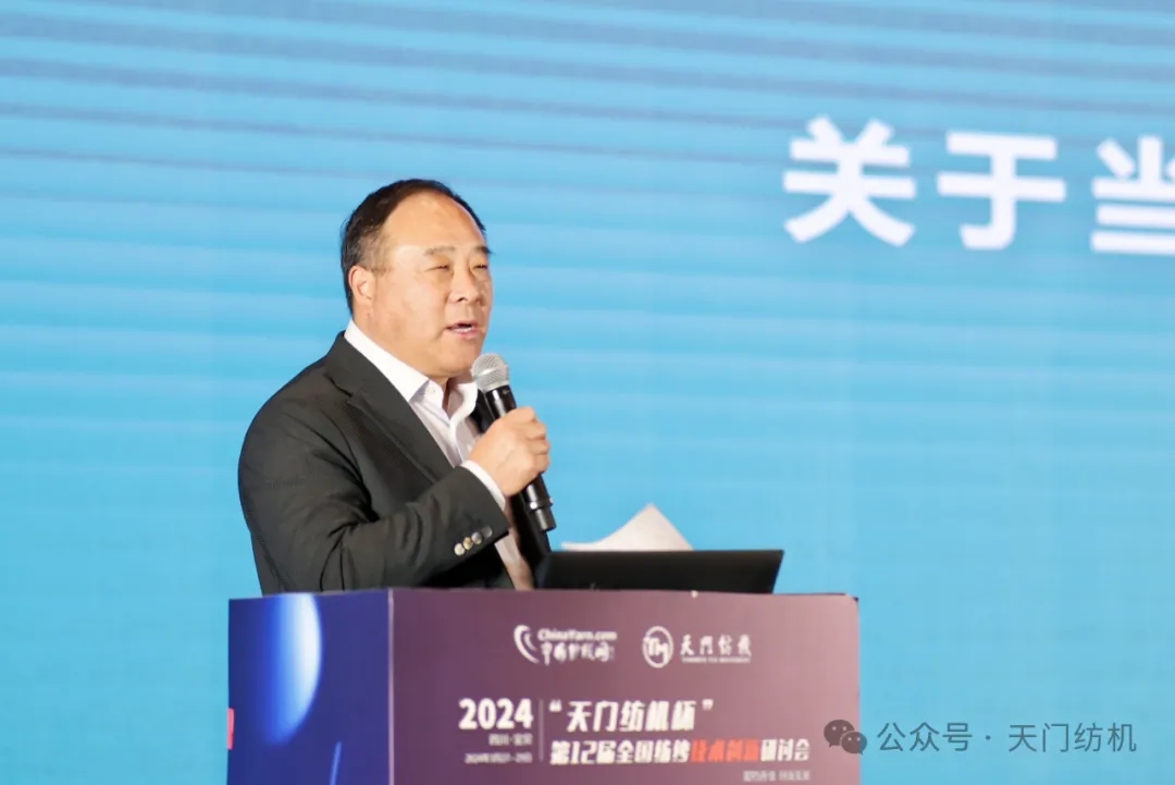 此后,中國紡織機械協會會長顧平作了題為《紡織行業的發展情況》報告;屏山縣經濟合作和外事局黨組成員、副局長陳廷杰對屏山縣紡織產業投資環境進行了介紹;中國紗線網總編王果剛做了題為《關于當前紡織行業形勢的分析及有關思考》專題報告;天門紡機品控總監樊早斌作了題為《基于產線聯動的并條機創新與開發》專題報告。