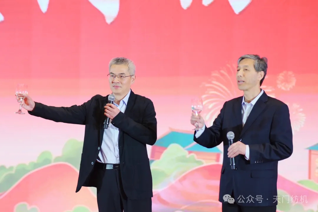 在28日的“天門紡機之夜”招待晚宴,天門紡機市場總監周志宏、中國紗線網副主編孫其海分別致祝酒辭。酒香四溢之中,精彩的節目表演及抽獎活動把晚宴氣氛推向高潮。