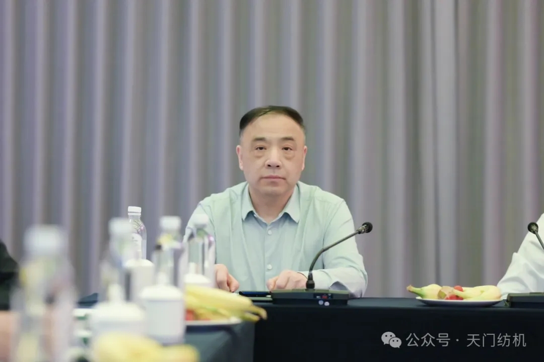 公司焦倫進總經理介紹了天門紡機產品開發情況,剖析了行業形勢和企業面臨的機遇與挑戰。他說,天門紡機作為并條機的專業生產廠家,不斷加大研發投入,專注于技術創新和產品研發,不斷探索新技術,成功研發并推向市場的TM11、TM13、TM15、TM17系列并條機已成為行業主力產品。公司倡導“并條工序全自調勻整”的理念后,推出了TM19大圈裝高速自調勻整并條機,并已在多家國內知名紡織企業推廣應用,效果十分明顯。在2023年11月舉行的上海國際紡機展覽會上,公司推出的TM25、TM27、TM29、TM35等四款并條機,因擁有智能在線檢測、一控多軸多臺、數據管理云平臺等技術,引起了業界廣泛關注,得到了高度評價;他強調,2024年,紡織行業仍將處于產業恢復期,市場逐漸回暖。同時,紡織行業正處在朝高端化、智能化、綠色化發展的轉型升級關鍵期,市場潛力大,積極向好的發展趨勢逐步顯現。因此,2024年將是機遇與挑戰并存、困難與希望同在的一年。只要我們保持定力,加強交流合作,群策群力,不斷推進數字化轉型和智能化改造,加快發展新質生產力,就一定能開創更加美好的未來。