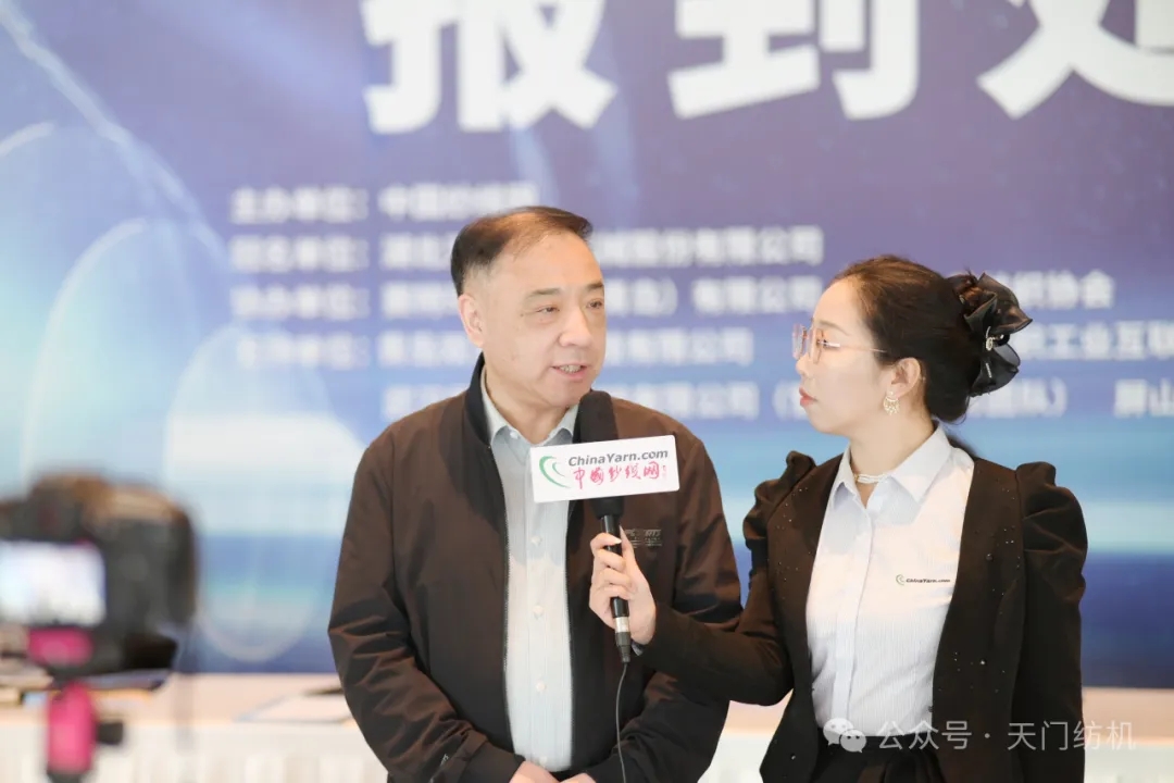 天門紡機總經理焦倫進在大會期間參加中國紗線網專家委員會會議并接受中國紗線網采訪。