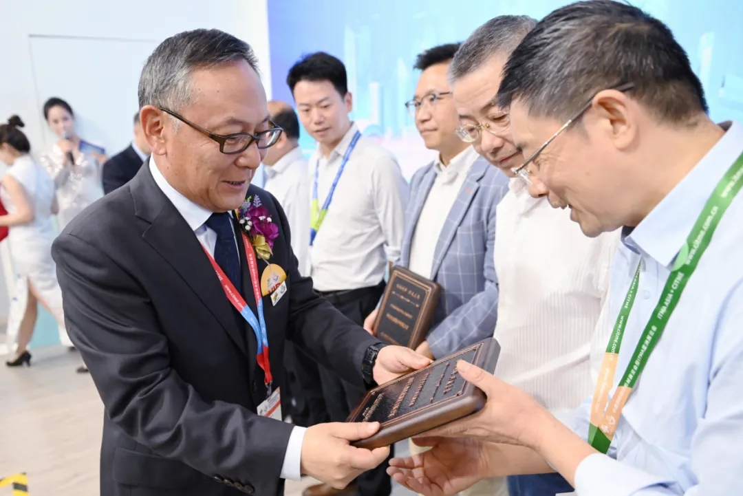 天門紡機總經(jīng)理焦倫進宣布在協(xié)同創(chuàng)新中作出突出貢獻的單位和個人名單,中國紡織工業(yè)聯(lián)合會徐迎新副會長為倪俊龍董事長、陳冰教授、曹中華博士、陸惠文先生頒發(fā)紀(jì)念章,為臺達、匯川、南通五洲等3家企業(yè)代表頒發(fā)紀(jì)念牌。