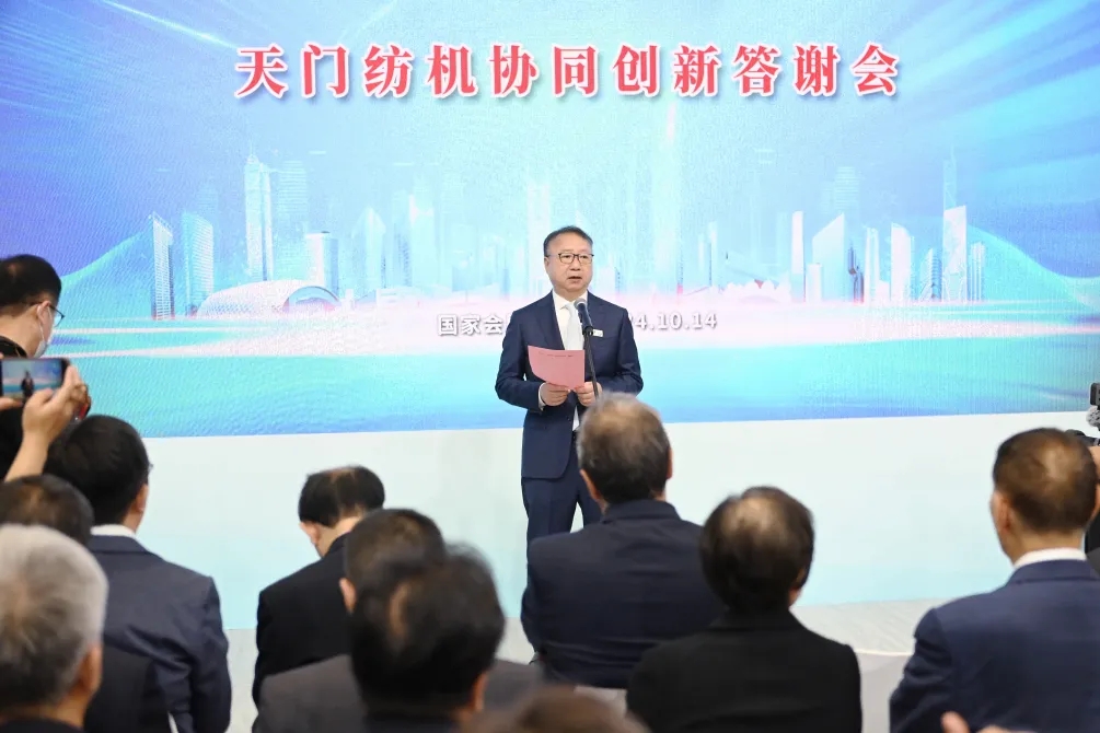 中國紡織工業(yè)聯(lián)合會會長孫瑞哲作了重要講話。他首先代表中國紡織工業(yè)聯(lián)合會對活動的舉辦表示熱烈祝賀!向為天門紡機并條技術(shù)進步作出貢獻的功臣們致以崇高敬意!他在給予天門紡機“是當(dāng)之無愧的棉紡并條專家”的充分肯定與最高贊譽時強調(diào):作為紡機行業(yè)的中堅力量,天門紡機扎根本土、布局全球、銳意創(chuàng)新、深耕專業(yè),在推動民族紡機品牌自立自強中貢獻卓著。天門紡機的每一次成功與飛躍,是企業(yè)自身追求卓越、勇攀高峰的回報,也是產(chǎn)業(yè)生態(tài)高效協(xié)同、價值共創(chuàng)的成果。他希望:在新征程上,天門紡機及其合作伙伴繼往開來、攜手共進、一以貫之推進紡機行業(yè)行穩(wěn)致遠,助力中國紡織行業(yè)新質(zhì)生產(chǎn)力發(fā)展。