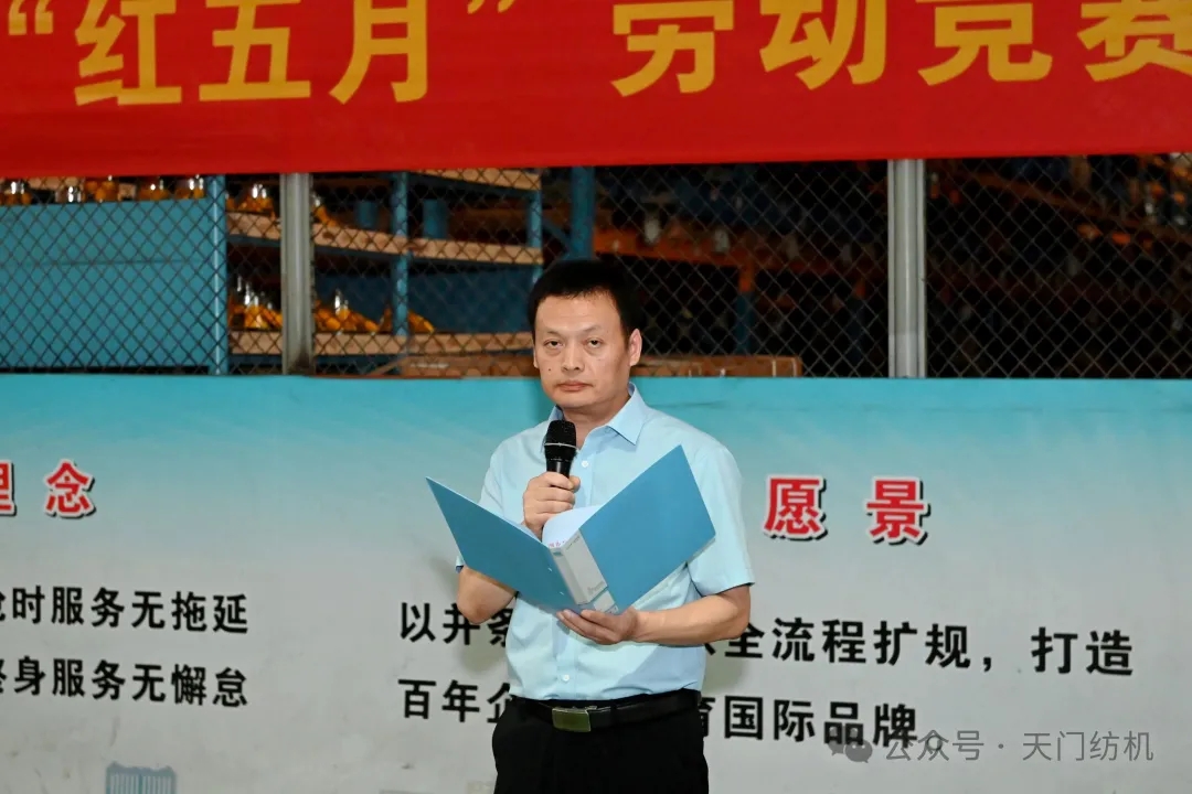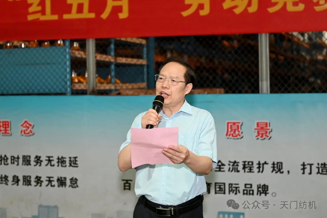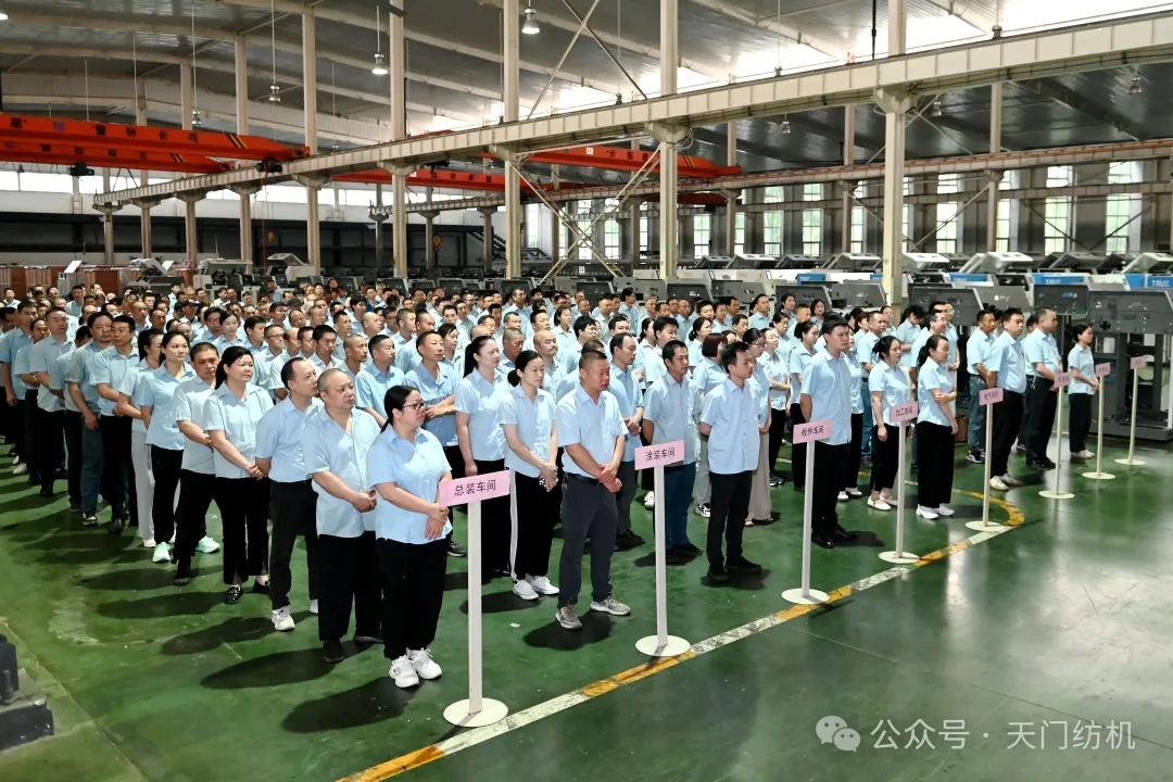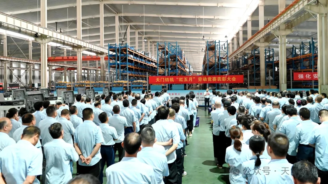 晨光微熹,映照勞動者的身影。2025年6月27日早上8:00,天門紡機全體員工齊聚總裝配區,舉行“紅五月”勞動競賽表彰大會,禮贊拼搏者,致敬奮斗人!