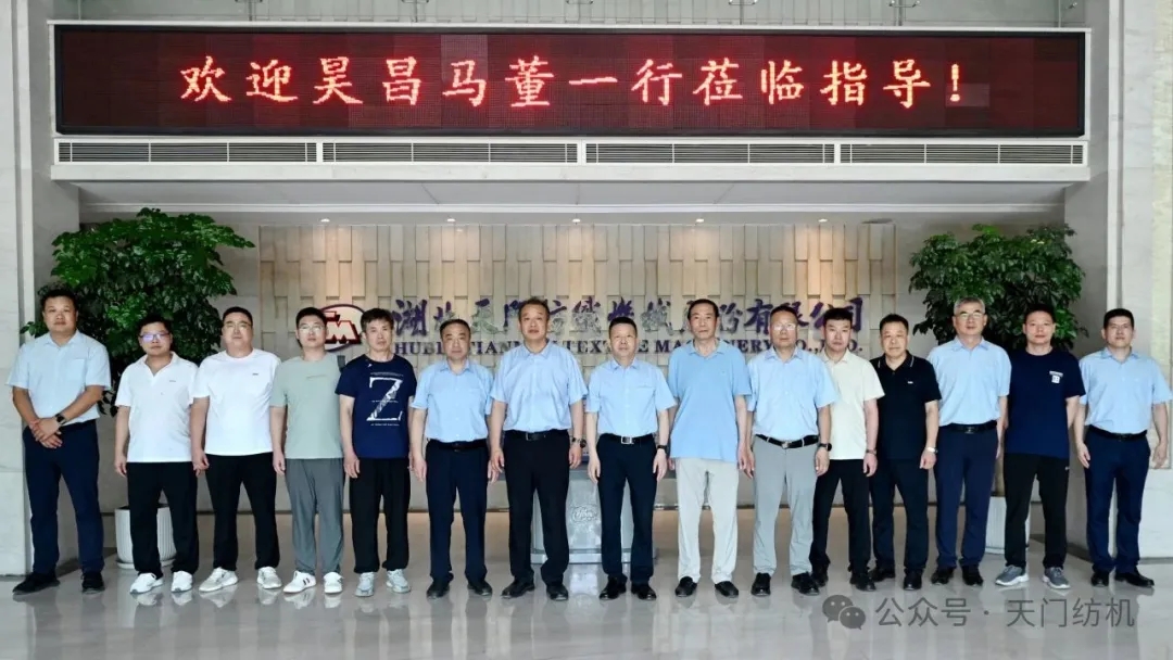 2025年6月30日上午,河南昊昌精梳機械股份有限公司董事長馬馳率高管及中層干部一行9人蒞臨天門紡機,傳經(jīng)送寶。公司董事長沈方勇率隊熱情接待到訪客人,雙方圍繞企業(yè)發(fā)展進行了深入交流。