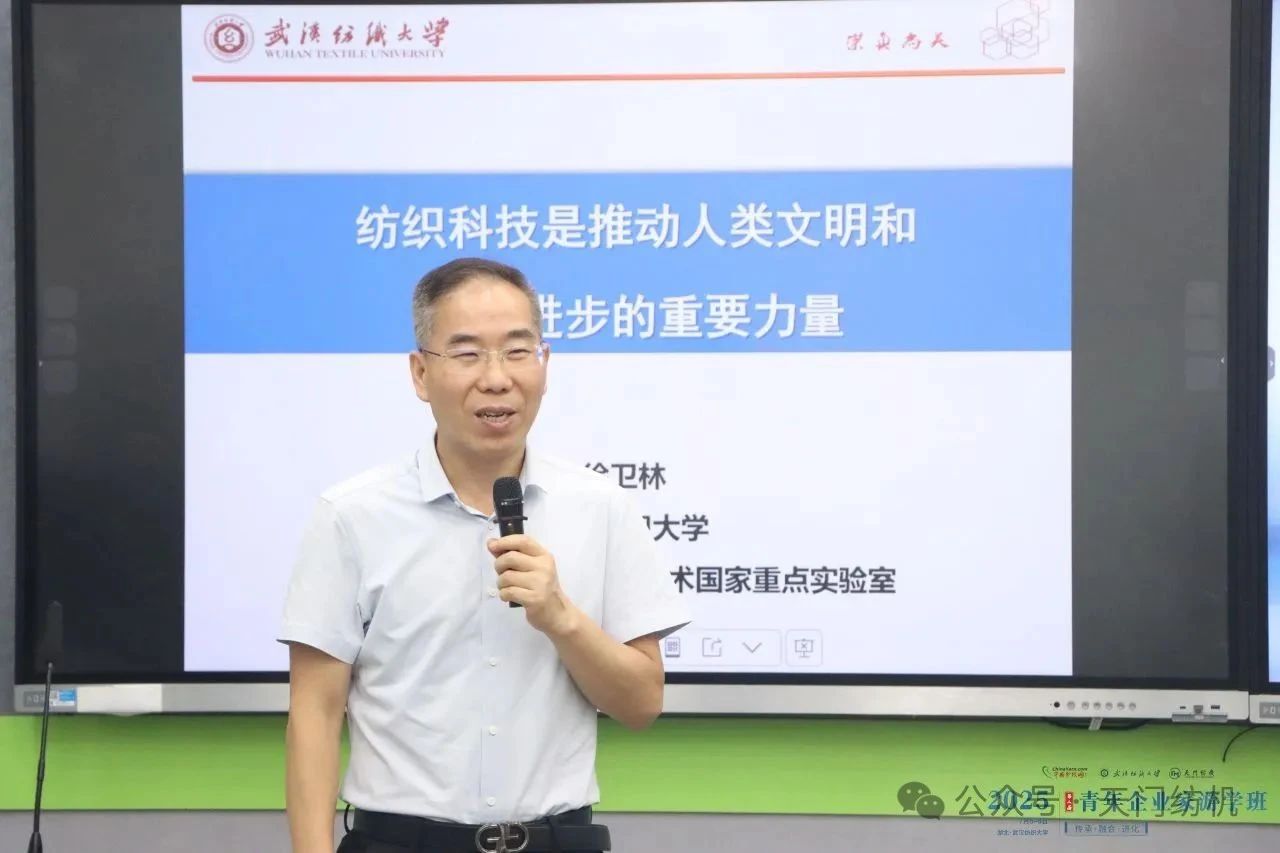 第一課由中國工程院院士、武漢紡織大學黨委書記徐衛林主講,主題為《紡織科技是推動人類文明和社會進步的力量》。他從紡織起源開始娓娓道來,貫通文化、品牌與時尚,深入剖析紡織科技的發展脈絡與未來趨勢,為學員們帶來前瞻視野。