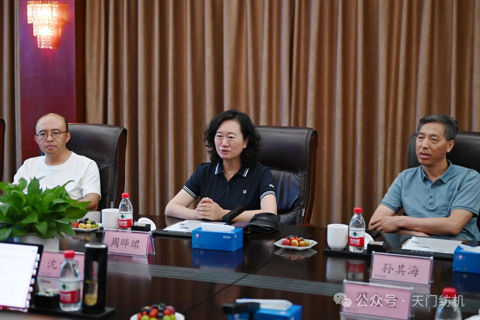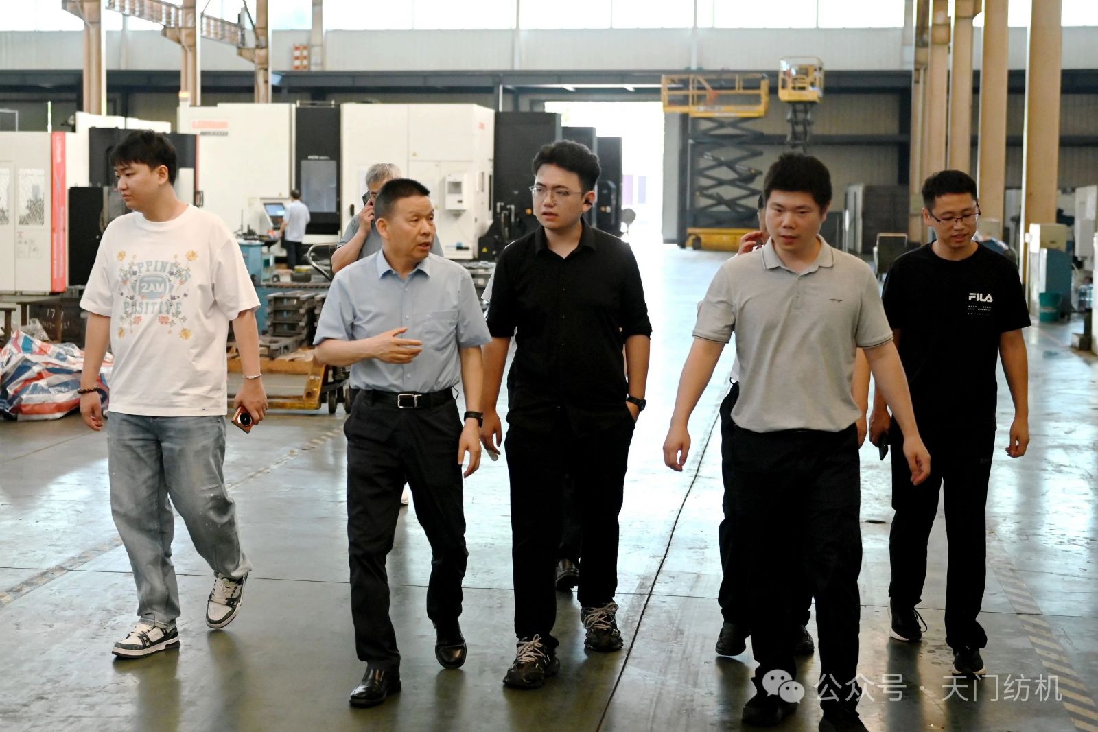 作為本次活動的支持單位,天門紡機盛情邀請了一批行業領袖和青年翹楚蒞臨公司指導交流。7月9日上午,無錫一棉原董事長周曄珺、中國紗線網副總裁孫其海、鐵門關星宇信達總經理郭超、河南盛泰越南棉紡總經理馬強強等貴賓蒞臨公司調研;當日下午,鄆城東盛總經理劉顯豐、新疆智亞總經理劉顯赫、福建云杉總經理許立、廣東洪興實業股份有限公司營銷總監柯楷楠、鄆城晨龍紡織總經理何邦超等貴賓到訪公司。公司董事長沈方勇、總經理焦倫進全程熱情接待。